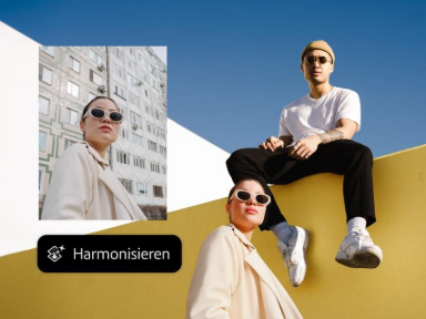 Mehrere Bilder zu kombinieren und dabei Schatten, Licht und Ton einheitlich darzustellen, ist oft nicht leicht. Das KI-gestützte Tool „Harmonisieren“ unterstützt dich bei der Erstellung stimmiger Bildkompositionen für Produktkataloge, digitale Collagen oder Social-Media-Kampagnen.