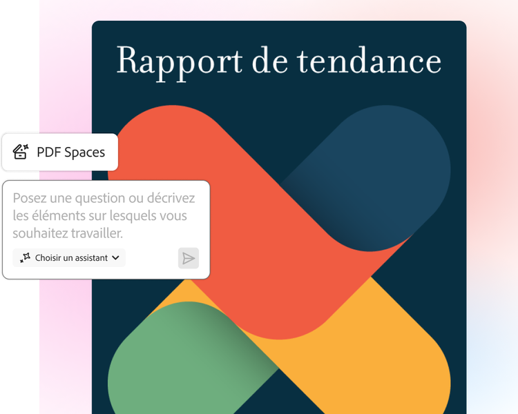Transformez des fichiers statiques en centres de connaissances conversationnels avec le module PDF Spaces d’Acrobat, et réalisez des analyses approfondies à l’aide d’un Assistant IA personnalisé.