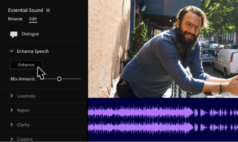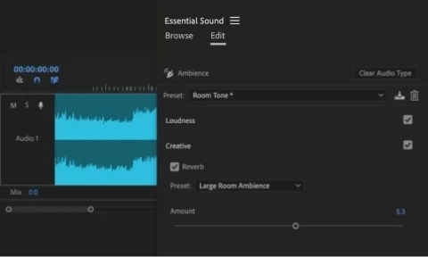 L’IA détermine automatiquement si vos séquences sont des pistes musicales, des dialogues, des effets sonores ou des sons d’ambiance, et leur ajoute un badge interactif. Il suffit ensuite de cliquer sur ce badge pour accéder instantanément aux outils les plus adaptés à chaque type d’audio.