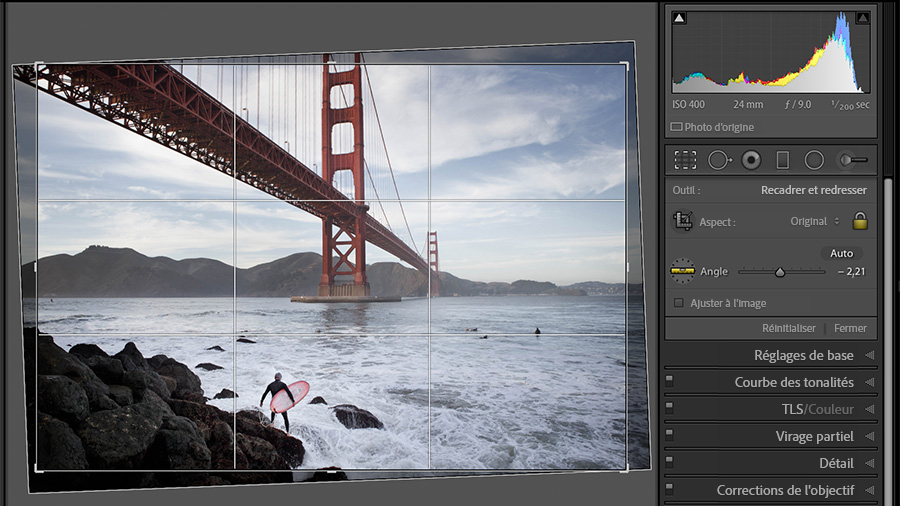 Redressez des photos inclinées et recadrez-les selon un rapport L/H précis pour un résultat parfait dans Adobe Lightroom Classic.