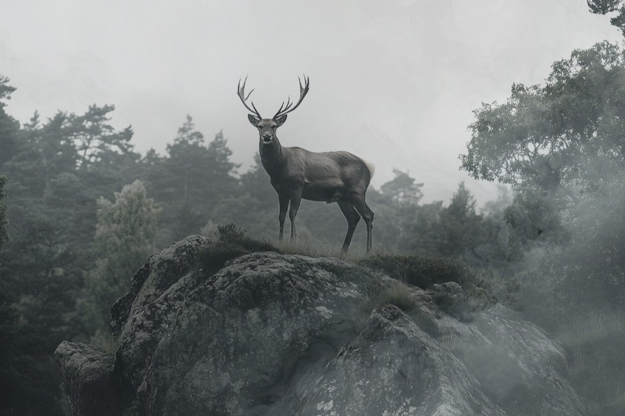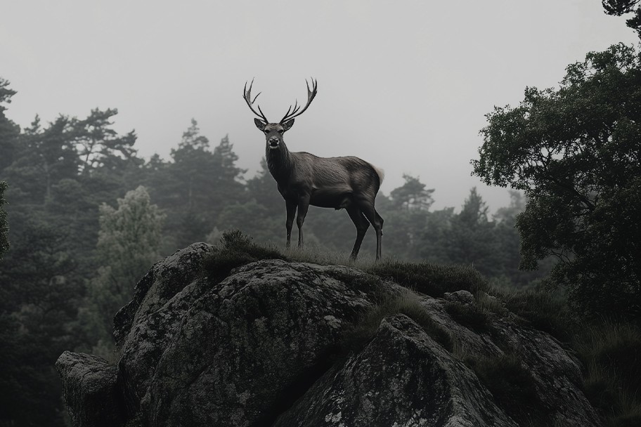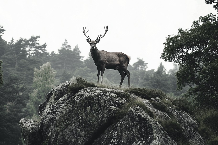 En ajustant finement les points lumineux et sombres, vous donnerez à l’image finale une profondeur immersive et un fort pouvoir évocateur. Le cerf, désormais entouré d'une forêt voilée par la brume, bénéficiera d'un contraste équilibré qui le mettra naturellement en avant.