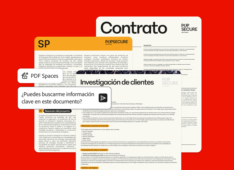 Transforma archivos y enlaces en un espacio de conocimiento conversacional. Con PDF Spaces, puedes chatear con tus documentos para obtener información clave más rápido y con citas exactas.