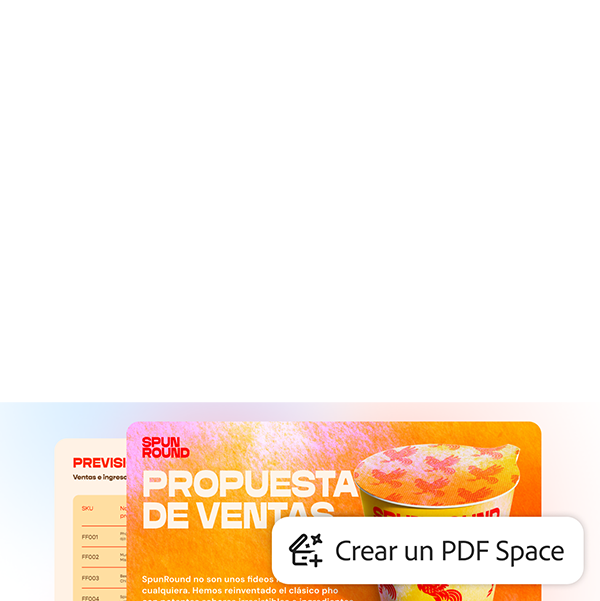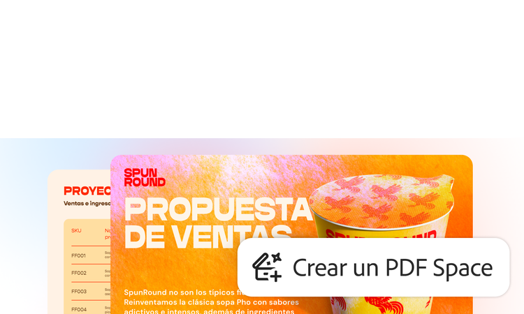 Obtén información clave más rápido y crea contenido extraordinario con Adobe Express y las herramientas de PDF en las que confías, todo en un solo lugar. PDF Spaces transforma archivos estáticos en espacios de conocimiento conversacional, con un Asistente de IA personalizado para obtener información más detallada.