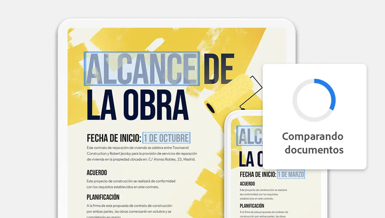 Utiliza la herramienta Comparar archivos para identificar fácil y rápidamente lo que ha cambiado entre dos versiones de tu PDF.