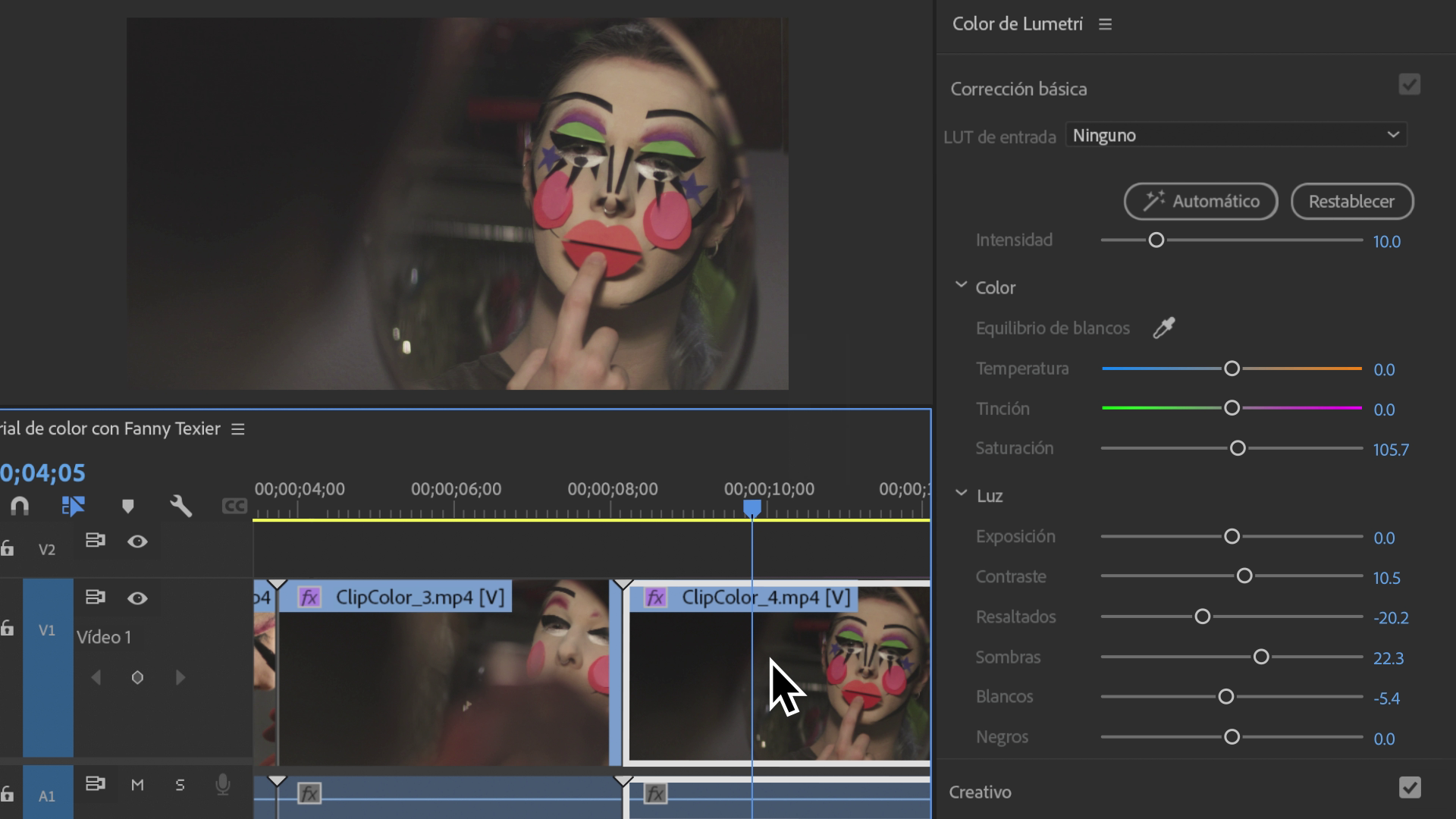 Cuando hayas conseguido el aspecto deseado, puedes copiar y pegar el efecto Lumetri Color en otros clips para no tener que volver a crearlos desde cero.