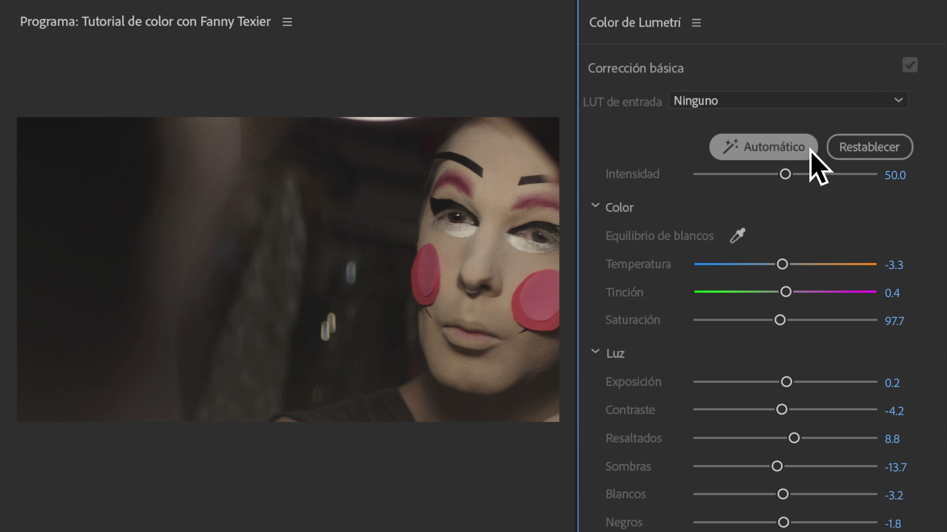 Mejora al instante la apariencia de tus secuencias con Color automático: una corrección de color con la tecnología de la IA que equilibra el color, mejora la exposición, corrige el contraste y mucho más.