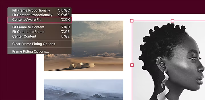 Ciri automasi seperti skala Penyesuaian Sedar Kandungan dan letak semula imej untuk membantu anda mendapatkan bahagian terbaik setiap imej dalam bingkai. Anda boleh meletakkan imej anda sendiri ke dalam reka letak, atau anda boleh melayari dan melesenkan imej berkualiti tinggi daripada Adobe Stock terus dari InDesign untuk menambah pop visual pada surat berita anda.