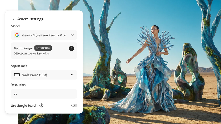 Cara menggunakan Google Gemini 3 (dengan Nano Banana Pro) dalam Jana Imej Firefly.
