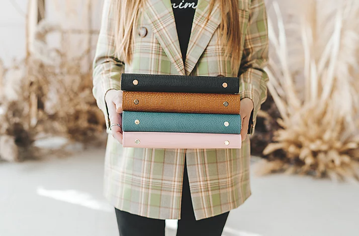 A person standing and holding multiple catalogues
