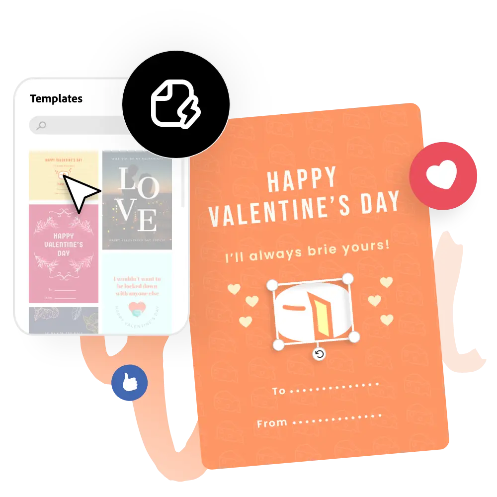 Adobe Express is jouw ontwerpexpert op het gebied van valentijnskaarten.