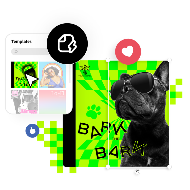 Dankzij Adobe Express maak je eenvoudig een albumhoes. Sjabloon kiezen, aanpassen en publiceren op alle kanalen. Zo simpel is het. De ervaring is intuïtief en je hebt geen ontwerpervaring nodig. Kies uit talloze sjablonen en vervang eenvoudig pictogrammen, tekst, afbeeldingen, achtergronden en andere ontwerpmiddelen zodat ze passen bij jouw merk.