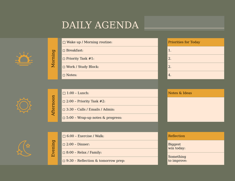 Kies uit onze sjablonen om je agenda gratis online te maken. Geschikt voor alle vaardigheidsniveaus.