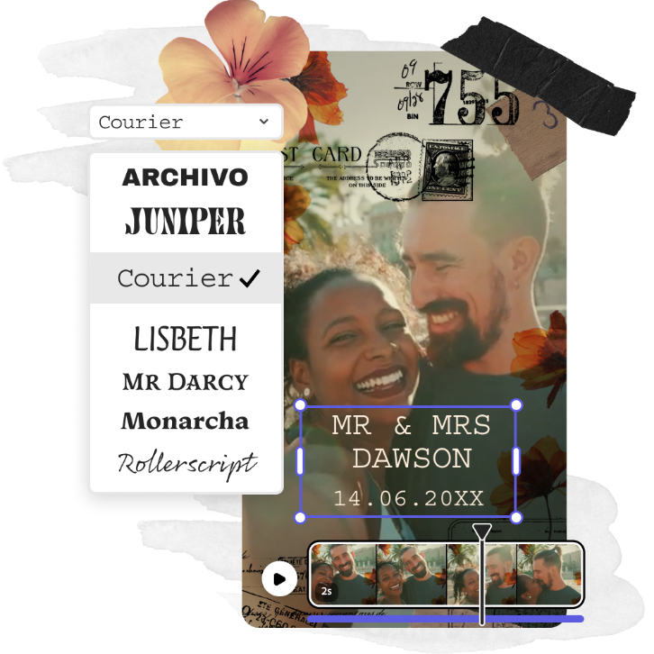 Door nostalgische elementen op te nemen in je jubileumvideo, kun je de emotionele impact ervan vergroten. Met Adobe Express is dit heel eenvoudig. Gebruik oude foto's en video's om mooie herinneringen op te roepen. Voeg nuttige bijschriften en datums toe voor meer context. Pas vintage filters en effecten toe voor een tijdloze sfeer en vul de beelden aan met gesproken tekst of voice-overs om context te bieden en het verhaal achter de beelden te vertellen.