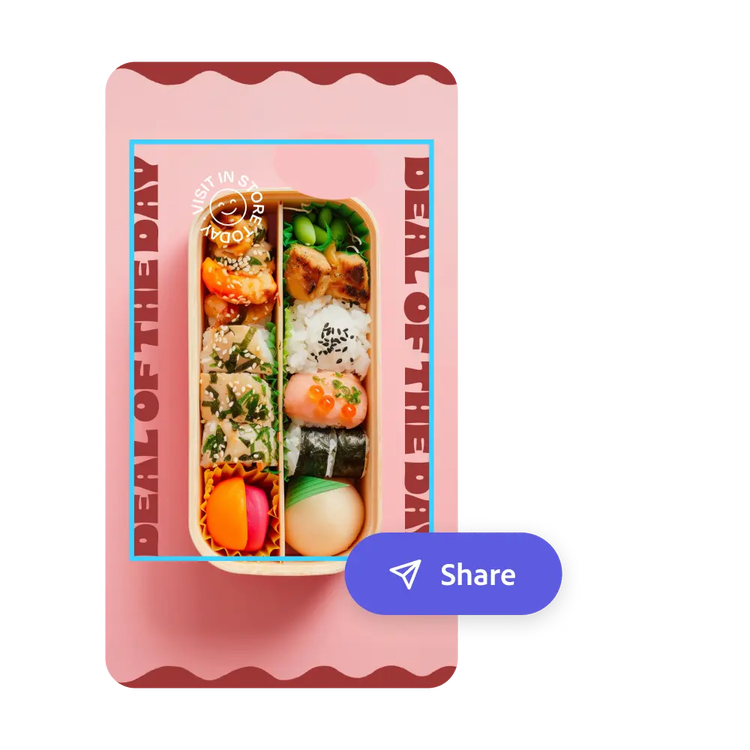 Ben je er klaar voor? Deel rechtstreeks vanaf het Adobe Express-platform op Instagram. Of download je ontwerp om het later te publiceren.