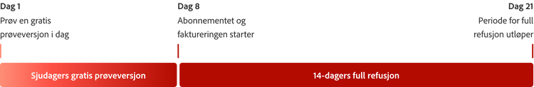 Prøv Acrobat Pro som en sjudagers gratis prøveversjon. Hvis du ikke får prøvd alle funksjonene i løpet av denne tiden, har du fremdeles 14 dager på deg til å kansellere og få hele beløpet refundert.