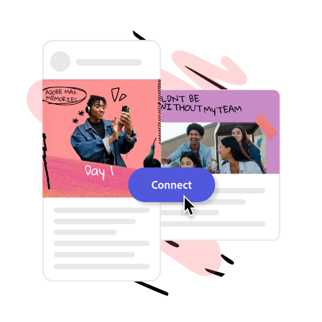 Velg blant tusenvis av gratis maler, designressurser og Adobe Stock-bilder for raskt og enkelt å lage enestående bilder og videoer til LinkedIn. Bruk den KI-baserte tekstskriveren til å lage en bildetekst som fanger oppmerksomhet.