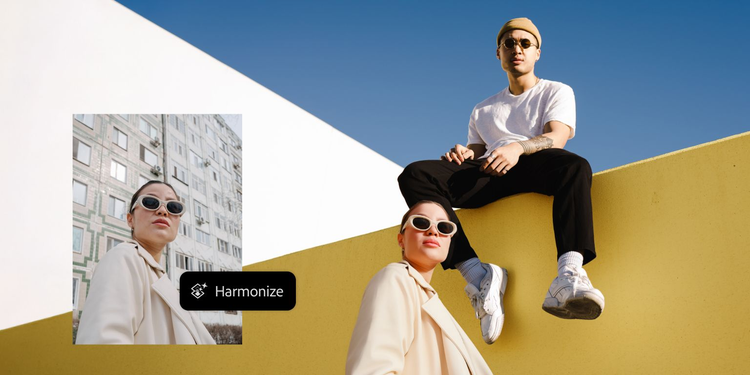 Det kan være vanskelig å få skygger, lyssetting og fargetoner riktig når flere bilder slås sammen. Harmoniser gjør det enkelt å lage sammensatte og KI-blandede bilder med et harmonisert preg til produktkataloger, digitale kollasjer og kampanjer til sosiale medier.