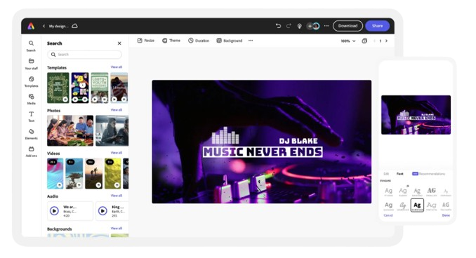 Easily get started in Adobe Express.