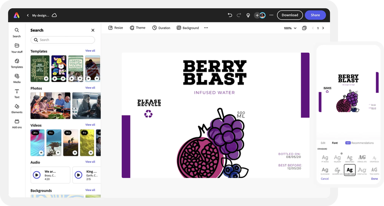 Adobe Express label maker gives you unlimited customization choices, all within an intuitive, easy-to-use app. Change the shape, size, format, background, special effects, text, and more -- you have complete control over the design and process. When you aren’t sure what you want, Adobe Express provides a selection of professional graphic arrangements for you to try out. And if you know exactly what you’re looking for, Adobe Express gives you the tools you need to craft the perfect label.