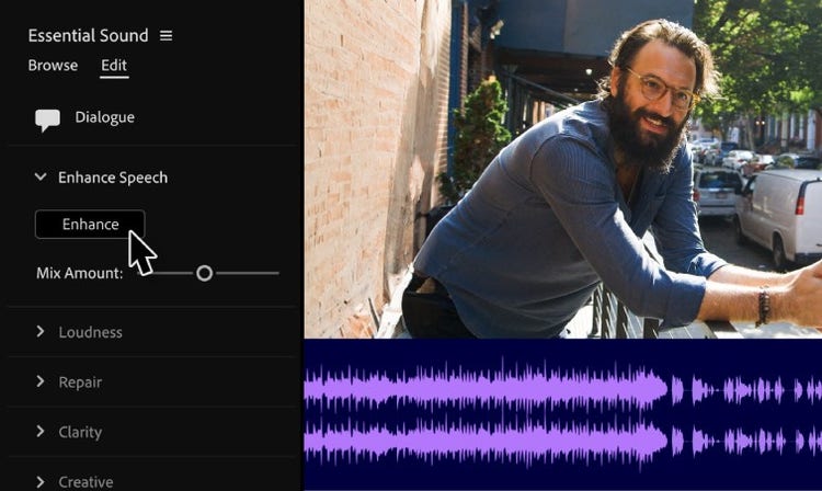 Awtomatikong natutukoy ng AI kung ang mga clip mo ay musika, dialogue, sound effects, o ambiance at nagdaragdag ito ng interactive na badge. Mag-click lang para makakuha ng agarang access sa mga pinakaangkop na tool para sa uri ng audio na iyon.