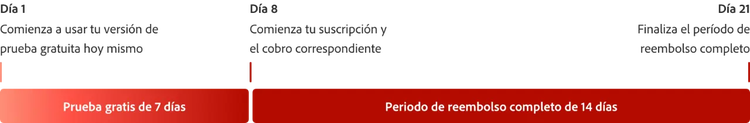 Prueba Acrobat Pro gratis durante 7 días. Si necesitas más tiempo para probar todas las funciones, tienes 14 días adicionales para cancelar y obtener un reembolso completo.