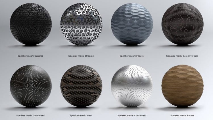 Speaker covers and grilles are graphic elements often composed of layered materials. Combined with complex patterns, they require heavy modeling resources.