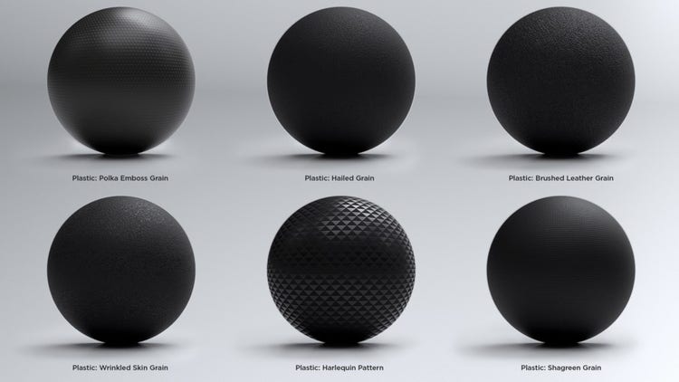 Plastic is another necessity in the field of design of manufactured products. Every designer tends to have a plastic grain roughness reference catalog on his or her desk. Right next to the color swatch.