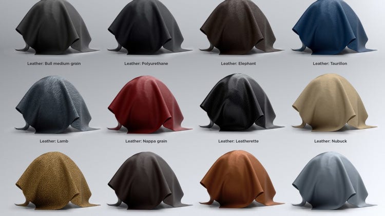 The color of the physical material sample doesn’t impose any limitations! Each leather base scan can be used as a hybrid material, so you’re free to change elements such as color and roughness.