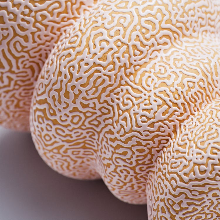 Unlike conventional manufacturing processes, where control and repeatability are central, hybrid living materials introduce a degree of unpredictability. A 3D printing system developed by the Mediated Matter group at MIT, hybrid living materials allow for the inclusion of bacteria embedded directly into the material itself. Depending on the type of bacteria, various processes that are usually invisible to the naked eye are visualised when enzymes and proteins react and change color. This is not so different to how many traditional materials react to the environment in different ways – metals oxidise, fungal infections can create beautiful patterns in wood, and so on. Hybrid living materials make it possible to bring these processes into the world of high-tech manufacturing as a kind of updated take on patina for the digital age.