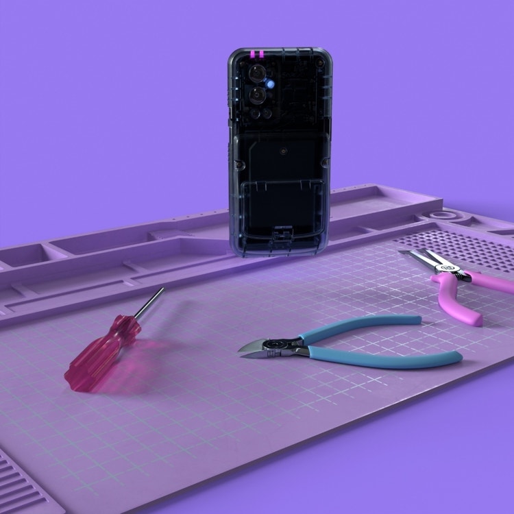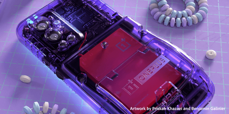 I follow a few 3D and motion design channels on Instagram that reshare artists’ work. It was there I saw work from Priskah and Benjamin. I was a big fan of the aesthetic of their 3D pieces, especially the connection to mid-90s, early-2000-era gaming. That got us on the OnePlus social media team thinking: What would one of our just launched 9 Series devices look like with that kind of translucent aesthetic?