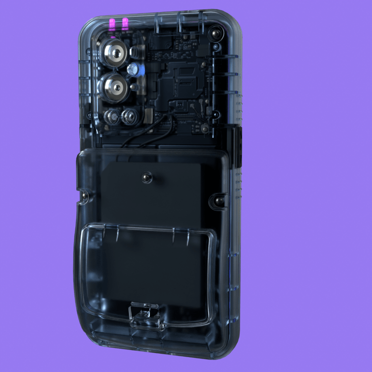 So I had to correlate the functionalities of the smartphone to a design choice on the ’90s aesthetic: for instance, the volume buttons became a volume wheel, and I borrowed the design of the famous D-pad for the ‘modes’ button. The mic on the top was ideally positioned to be an IR sensor, and at the back of the smartphone it felt right to add a battery cover, even though it’s not meant to be swappable on a smartphone.
