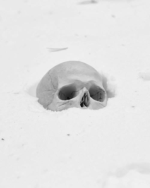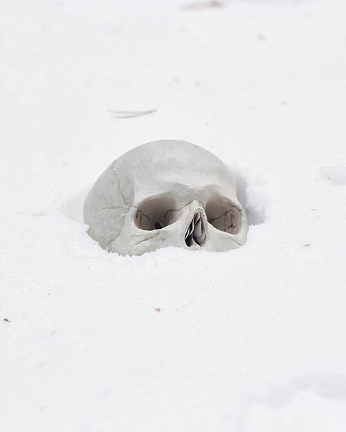 The skull looks white on sand (166sRGB), but gray on snow (243sRGB).