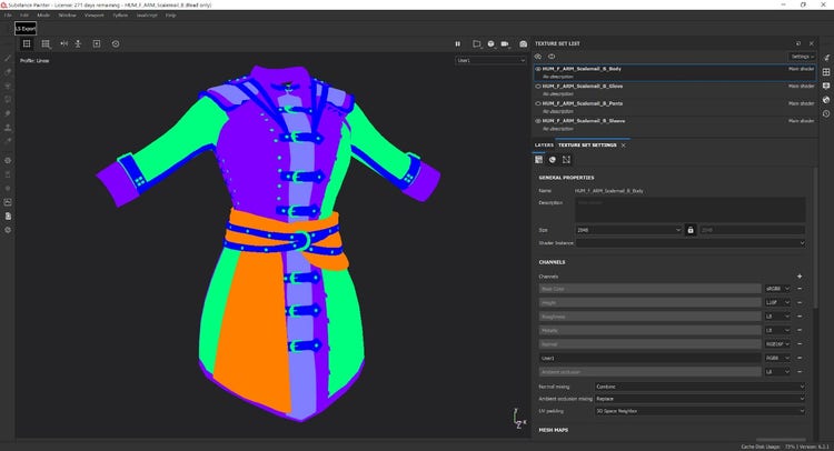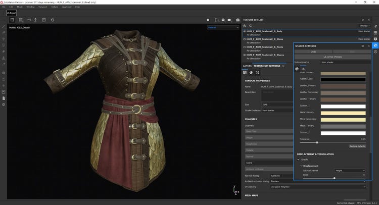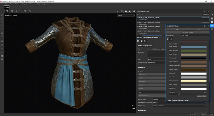In the future we’re planning to continue developing the shader even further, and potentially loading a couple of color presets that we have in the editor into Substance Painter so that we can quickly preview armors and outfits with existing color palettes.