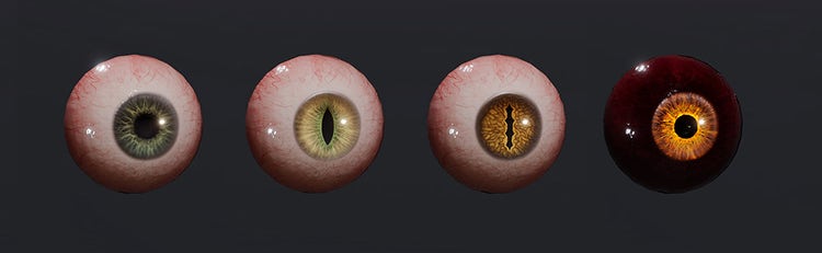 With characters this is more challenging. Eyes, for example, are never going to be PBR. If you’re making a shader for eyes, with a base color map, a normal map, and a roughness map, they aren’t going to look right. With eyes we had to come up with tricks to ‘cheat’ the characters’ eyes into looking better in a PBR environment. We use a custom shader for that, and it’s technically still a PBR environment – but there’s a bit of a fantasy aspect in there, too.