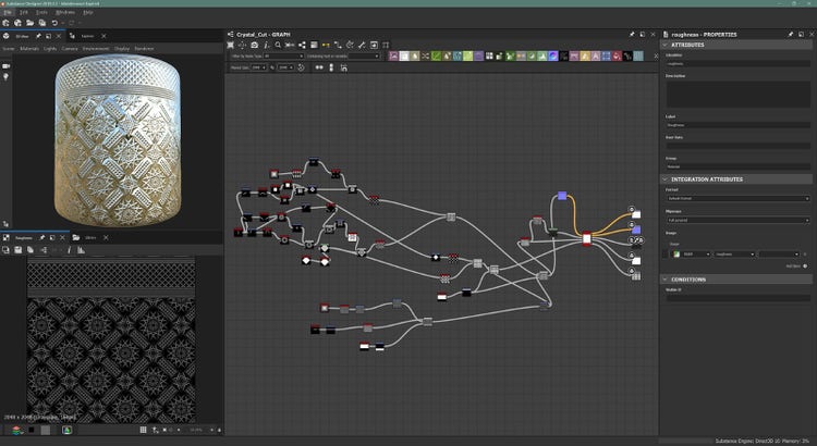 I love creating geometry with height maps and PBR textures! I talked more about this workflow in this livestream, dedicated to another version of this scene, with a Substance Designer keyboard as the central asset. The keyboard was used for the last Substance Designer release.