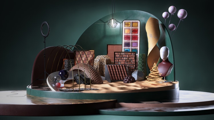 The aim of this project was only to use the materials available in the Community Assets library and showcase them in a scene. When it comes to art direction and creative decisions, initially we came up with a color palette and categorized materials according to the color theme. We had a lot of challenges. How could we use a wide range of materials in one scene along with realistic and stylized materials? So, we came up with an idea of a simple diorama scene with basic models which opened possibilities to use a wide range of materials and explore creative ways to light the scene.