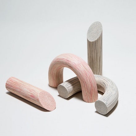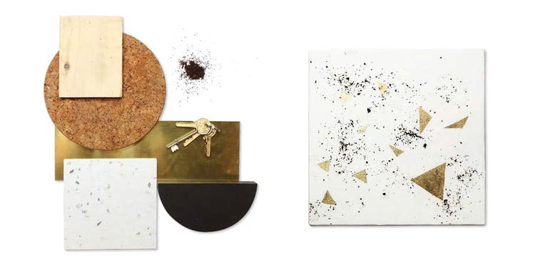 Taking things one step further, Smile Plastics also offer a bespoke service, inviting customers to send in various waste materials for Smile Plastics to mix into the sheets, like in the example featured here that combines a leftover plank, some old keys, a cork trivet and whatever else you can find around the house on any given day.