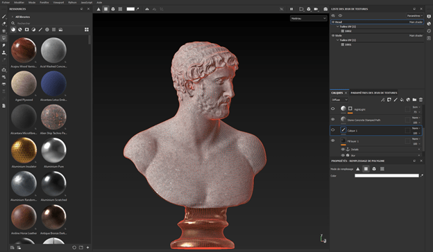 These are scanned, highly detailed models. To simplify them, I retopologized them in 3ds Max to get a mid-poly model. From that, in Substance 3D Painter, I started a new project with the mid-poly model; Painter has the option to bake the height poly onto the mid-poly to create the details as a normal map, and ambient occlusion. This makes the file lighter and optimized for painting.