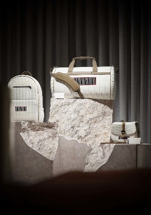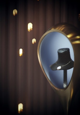 The next sequence I worked on was the alcove containing the flight cases. The key focus here is on the sunglasses, and the earrings; I had to find an interesting, artful way of presenting these items. As this is a concept store, I was able to get a little rock and roll here. I opened up the flight case and placed a bust inside; I positioned the sunglasses and earrings on the bust.