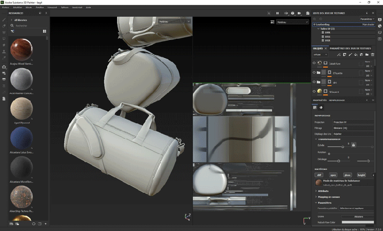 For the bags, I started out by choosing a simple model from Substance 3D assets. Then I used Painter to alter the displacement of the model; like this, I reshaped the original bag to become something that had more of a luxurious feeling. I also used Painter to create the label on the bags.