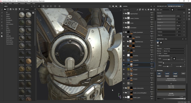 Paul: Substance was really just kicking off in the year before I started working on Gears Tactics. I had been using it on previous projects and could really see it being integral to our pipeline. I wanted the entire character art texturing pipeline to be centered around Substance. From the first armor I created for Tactics I was already saving smart materials that were used across the rest of the project. It helped us iterate very quickly and maintain a level of quality with the character art team and our outsourcing team.