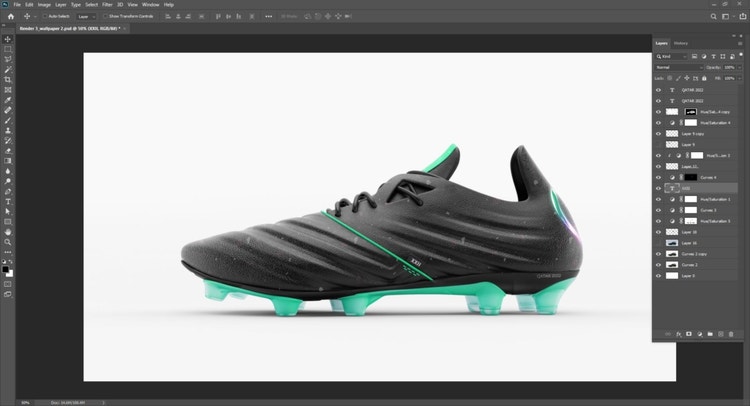 The foundation of every render is the model that you are working with, no matter how real your materials and lighting setup looks, if your model looks funny or the proportions are off, it won’t really matter, as that is the first thing that will get noticed and come off as an inaccurate and unrealistic object. Once I finished modeling the shoe, I added a basic level of detail to it using displacement maps, something that you can do nicely and control in Substance 3D Painter or your software of choice. Breaking the flat surface up with some unexpected textures will make it one step closer to a real shoe, which most of the time has something going on in the materials.