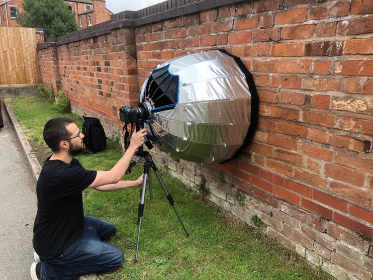 The vector light rig is an inverted photography soft box that has eight LEDs placed around the interior with a camera placed on top. We activate the camera and LED lights through a timer box. This triggers the camera and one LED light simultaneously. This occurs in succession for all 8 LED lights, giving us eight images.