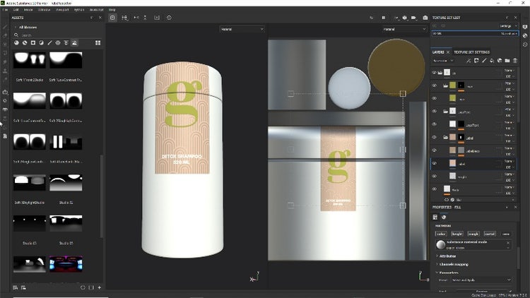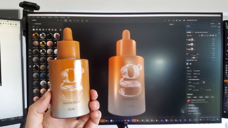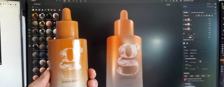 Before getting started on our first 3D printed prototype, we needed to obtain Substance’s product packaging files. Here are three textured models in Substance 3D Painter.