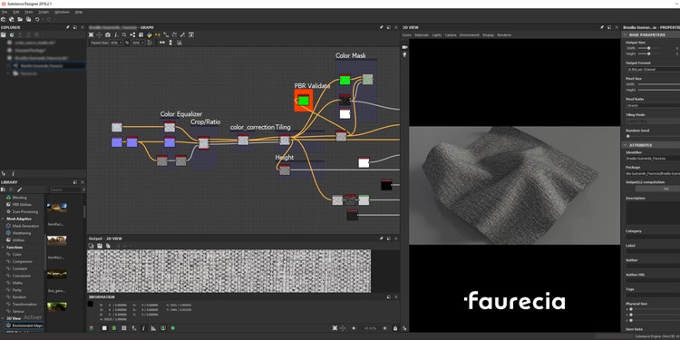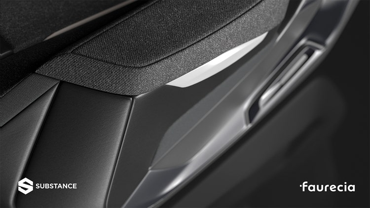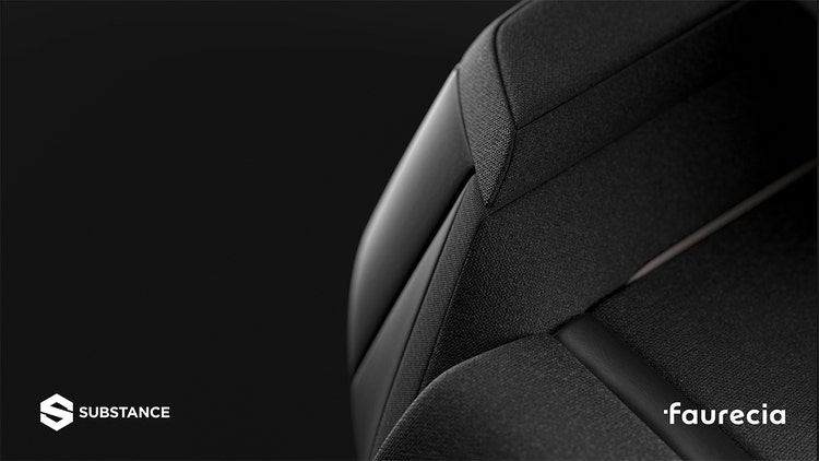 Damien Bousseau: Visualizing the seat in a photorealistic way requires the accurate creation of its materials. This means reproducing each material surface from the plastic grains and glossiness level to the intricate textile weaves. In this specific case, we opted to scan the samples Marion selected from Faurecia suppliers. This allowed us to capture every detail of the weave very accurately.