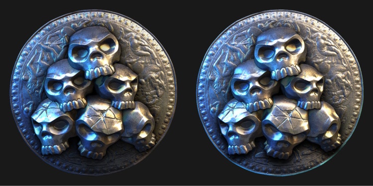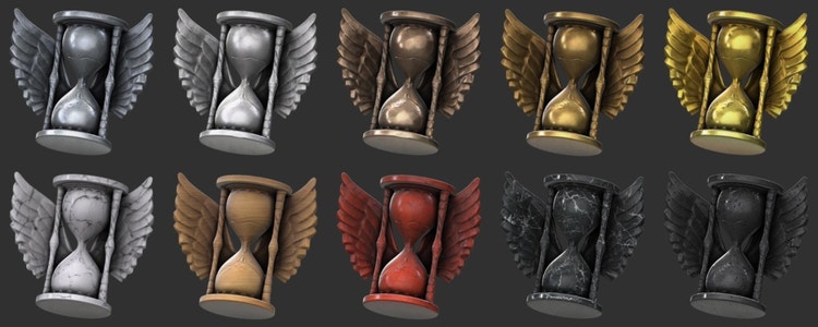 The last thing we were uncertain of was how to combine the primary and secondary elements of the badge. Yes, there was a clear option of doing that in Substance Designer but at that point, we didn’t have the process of generating heightmaps nailed down. On top of that, we didn’t know what those elements would look like, how big they would be – aka what their height ranges would be. They might overlap in some way and we didn’t want to build systems to optimize and balance all of that. We went a bit old-school and just combined the elements in Photoshop. It was rather simple to build a Layer Style that would match the shadows of the PBR Render node.