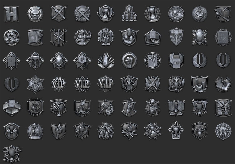 For the secondary (background) elements we went all in and used everything we had – procedural, alpha library, some custom made ones and we even made a quick shield generator in Substance Designer that was used in more than half of them.