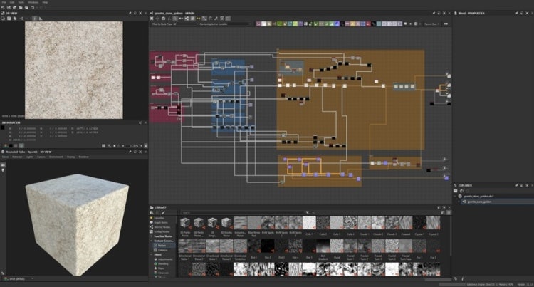 A third way I use Substance is by using the more than 7000 materials available. This resource is an invaluable aid that can help you in many ways. First it is a learning tool. It isn’t the first time I downloaded a material to check how a particular shape was created. Seeing how other professionals tackle a problem and the procedural solution used can give me an idea of how I could implement something similar when creating materials in Designer.