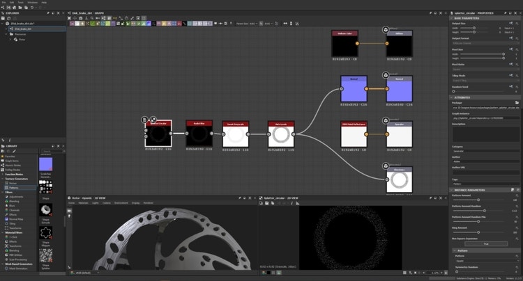 For this project, I used Substance 3D Designer to make various shaders. For example, I made the scratches on the disk brake rotor to make it look more realistic and slightly used.