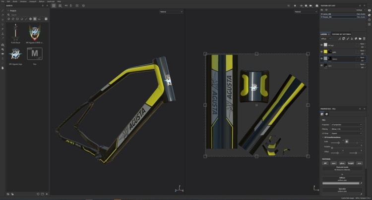 I used Substance 3D Painter to apply all the graphics on the e-bikes and the kick scooter.